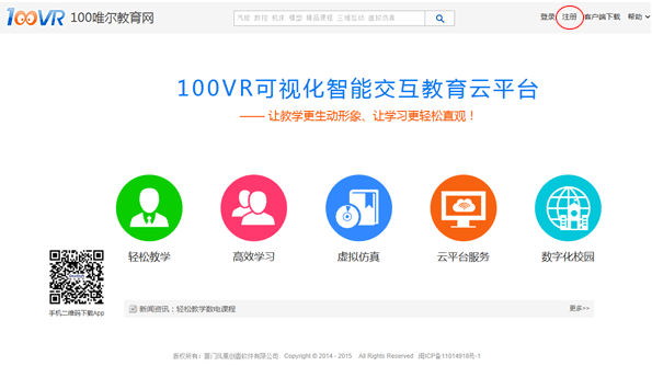 教育云平臺(tái)主頁(yè): 看到右上角有導(dǎo)航菜單,點(diǎn)擊注冊(cè),進(jìn)入注冊(cè)界面。