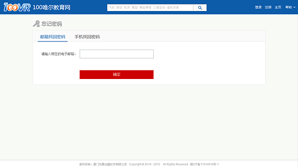 密碼找回界面:輸入注冊(cè)時(shí)用的郵箱或者手機(jī)號(hào)。點(diǎn)擊確定后,系統(tǒng)會(huì)發(fā)郵件或者短信到對(duì)應(yīng)的賬號(hào)。